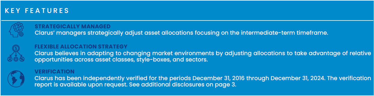 Clarus investment management returns have been independently audited and verified under GIPS standards for the periods December 31, 2016, through December 31, 2024.
